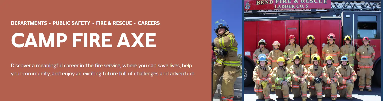 Bend Fire & Rescue invites Central Oregon high school students who are considering a career in the fire service to apply for Camp Fire Axe, an annual four-day summer academy put on by professional firefighter/paramedics.