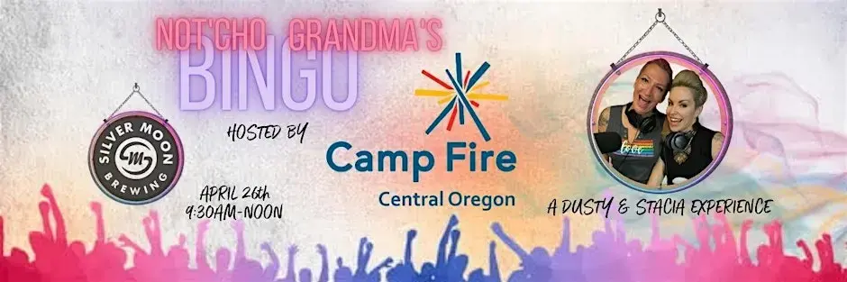 It’s spring fundraiser season at Camp Fire Central Oregon, which means one thing: Everyone is invited to our Not’Cho Grandma’s BINGO fundraiser Sunday, April 26, 2025, from 9:30am – 12pm at Silver Moon Brewing in Bend!